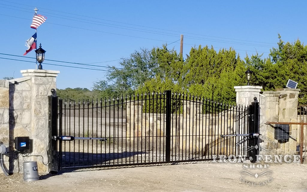 20ft Wide Stronghold Iron Gate in 6ft to 7ft Height Installed Behind Columns