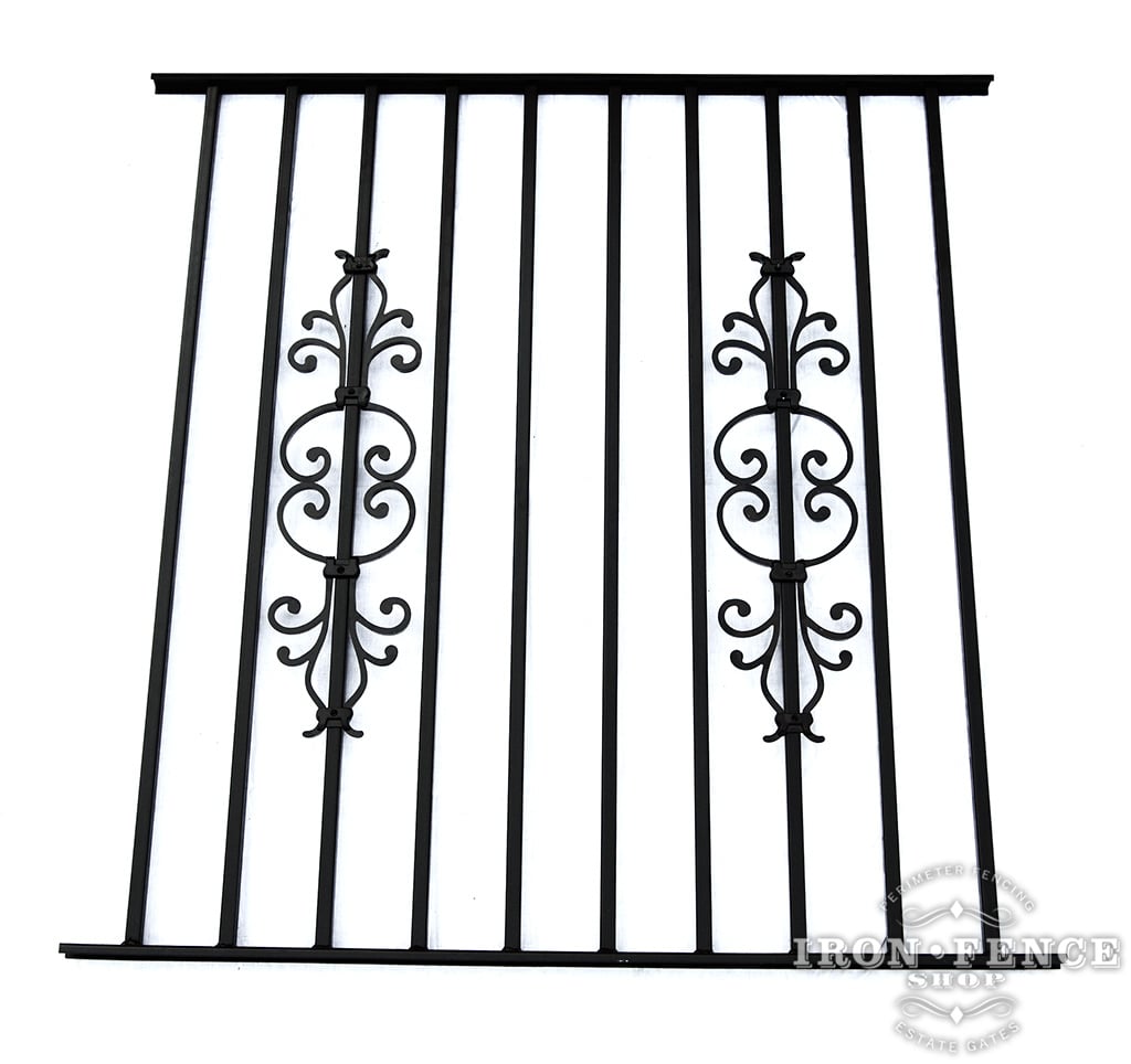 50in Tall Pool Style Wrought Iron Fence in Signature Grade with Stacked Cape Cod Add-on Decorations