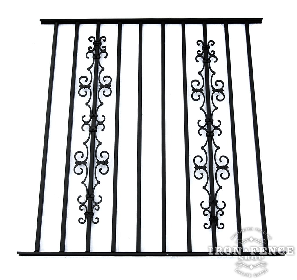 50in Tall Pool Style Wrought Iron Fence in Signature Grade with Stacked Guardian and Butterfly Add-on Decorations