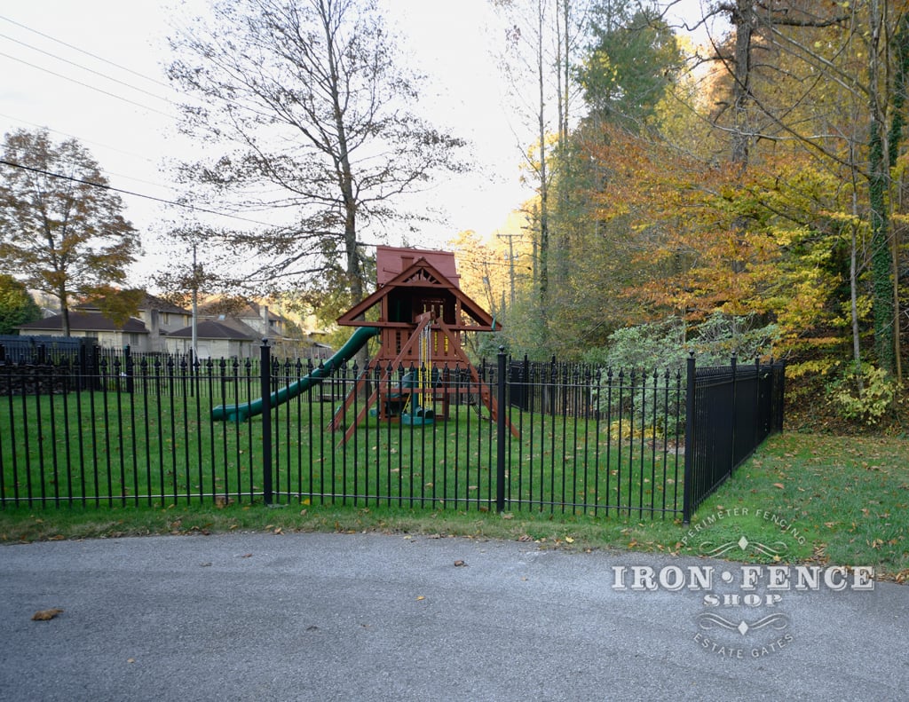 5ft Tall Wrought Iron Fence in Classic Style Surrounding a Play Area