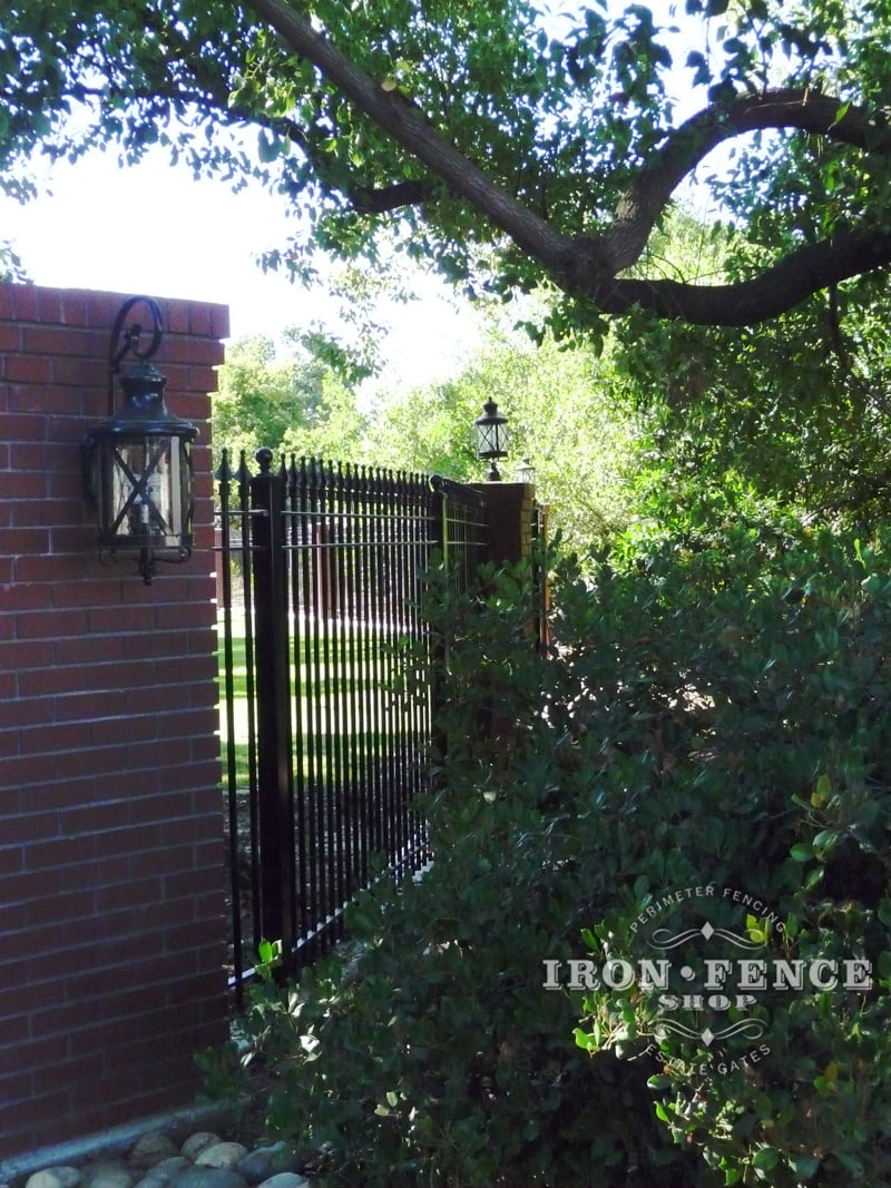 6ft Tall Signature Grade Iron Fence Mounted Directly to Brick Column and Angled Off With Special Brackets (Style #1: Classic)