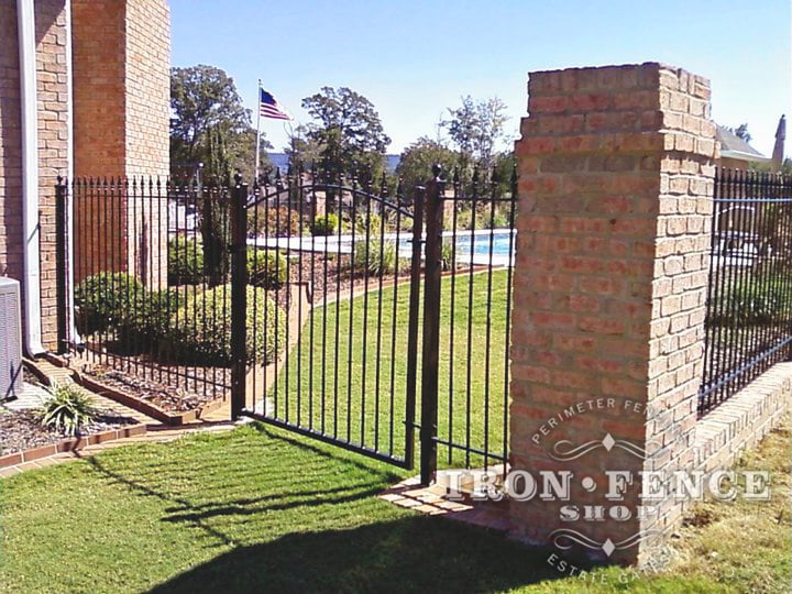 A Custom 5x5 Iron Arch Gate Combined with our Standard 4ft Tall Iron Fence