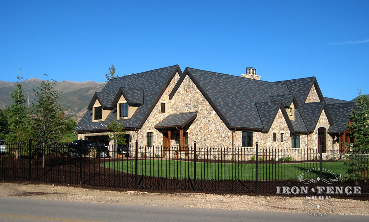 Our 6ft Tall Signature Grade Iron Fence Featured Around a High-End Model Home (Style #1: Classic)