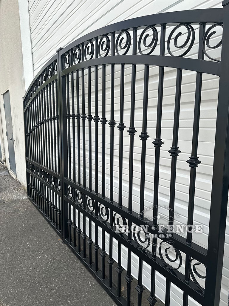 Regal Style Iron Driveway Gate with Q-scrolls and Picket Accents