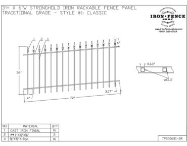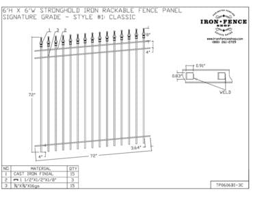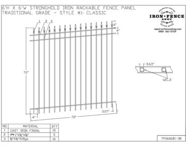 3'H x 6'W - Stronghold Iron - Traditional Grade Rackable Fence Panel - Style #1: Classic Download