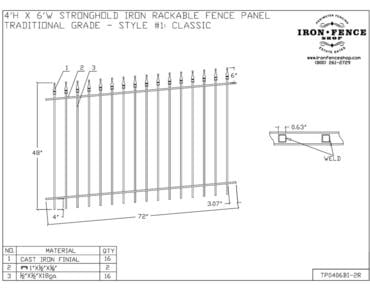 4'H x 6'W - Stronghold Iron - Traditional Grade Rackable Fence Panel - Style #1: Classic Download