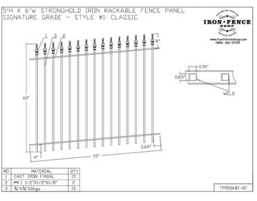 5'H x 6'W - Stronghold Iron - Traditional Grade Rackable Fence Panel - Style #1: Classic Download