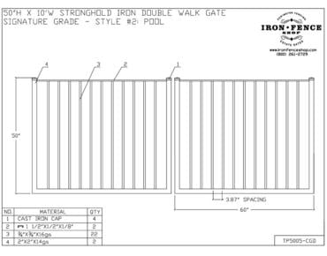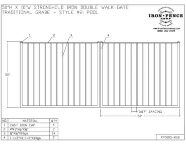 50"H x 10'W - Stronghold Iron - Traditional Grade Double Walk Gate - Style #2: Pool Panel Download