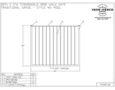 50"H x 5'W - Stronghold Iron - Traditional Grade Walk Gate - Style #2: Pool Panel Download