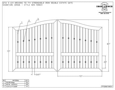 6' Arching to 7' H x 12'W - Stronghold Iron - Signature Grade Double Piece Estate Gate - Style: Ranch Download
